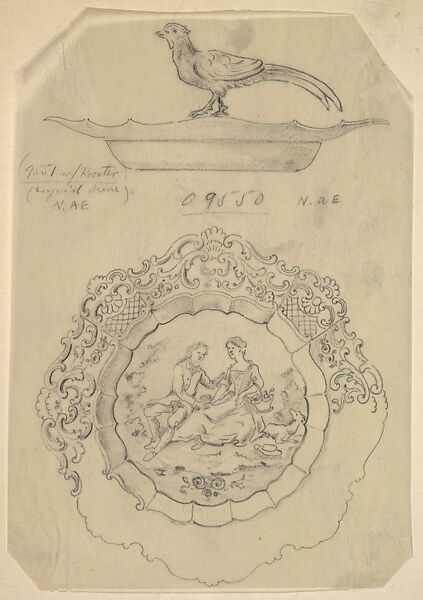 - Title: Design for a Covered Silver Dish with Rural Lovers and Pheasant Handle
