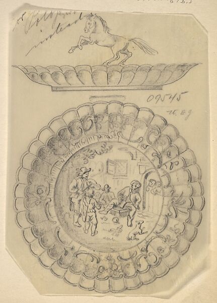 - Title: Design for a Covered Silver Dish with Tavern Scene and Horse Handle