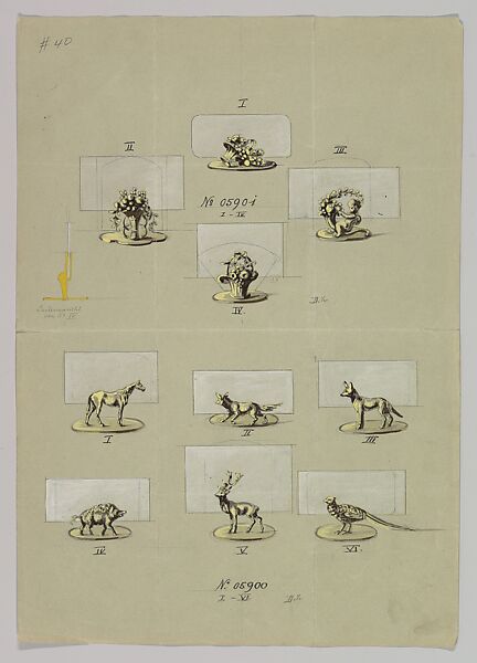 - Title: Design for SIlver Place Card Holders: Baskets of Fruits or Animals