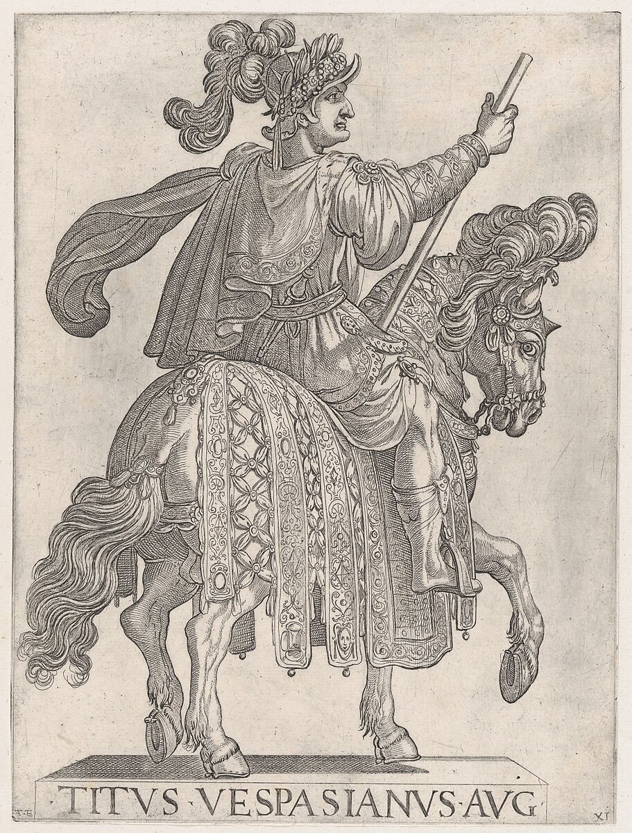 - Title: Plate 11: Titus Vespasian on horseback facing right from the 'First Twelve Emperors of Ancient Rome'