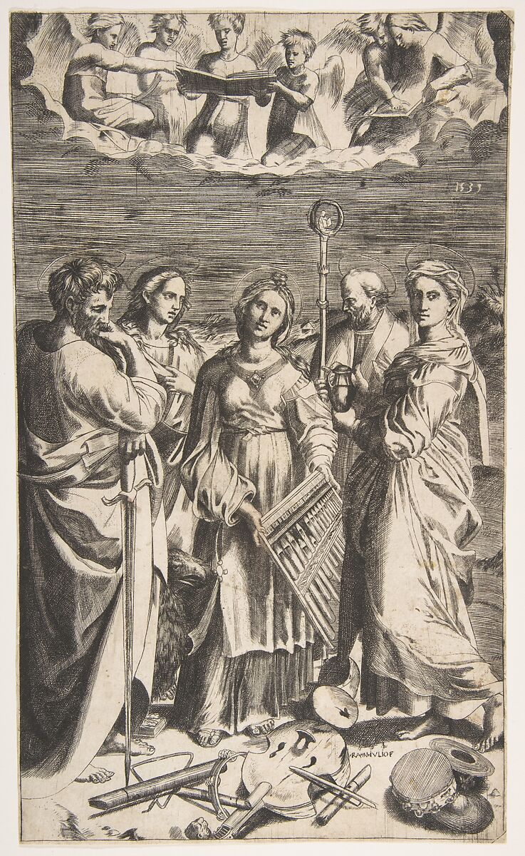 - Title: Saint Cecilia standing in the centre accompanied by Saint Paul, the Magdalene, Saint John the Evangelist, and Saint Augustine