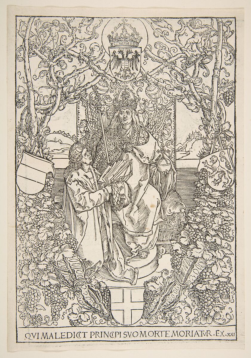 - Title:Conrad Celtis Presenting His Book "Quatuor Libri Amorum" to Maximilian I (from the book)
