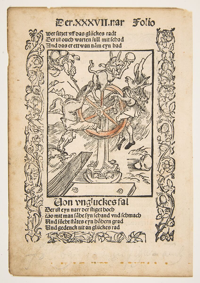Von Ungluckes Fal, title page chapter 37 from "Sebastian Brandt, Das Narrenschrift"