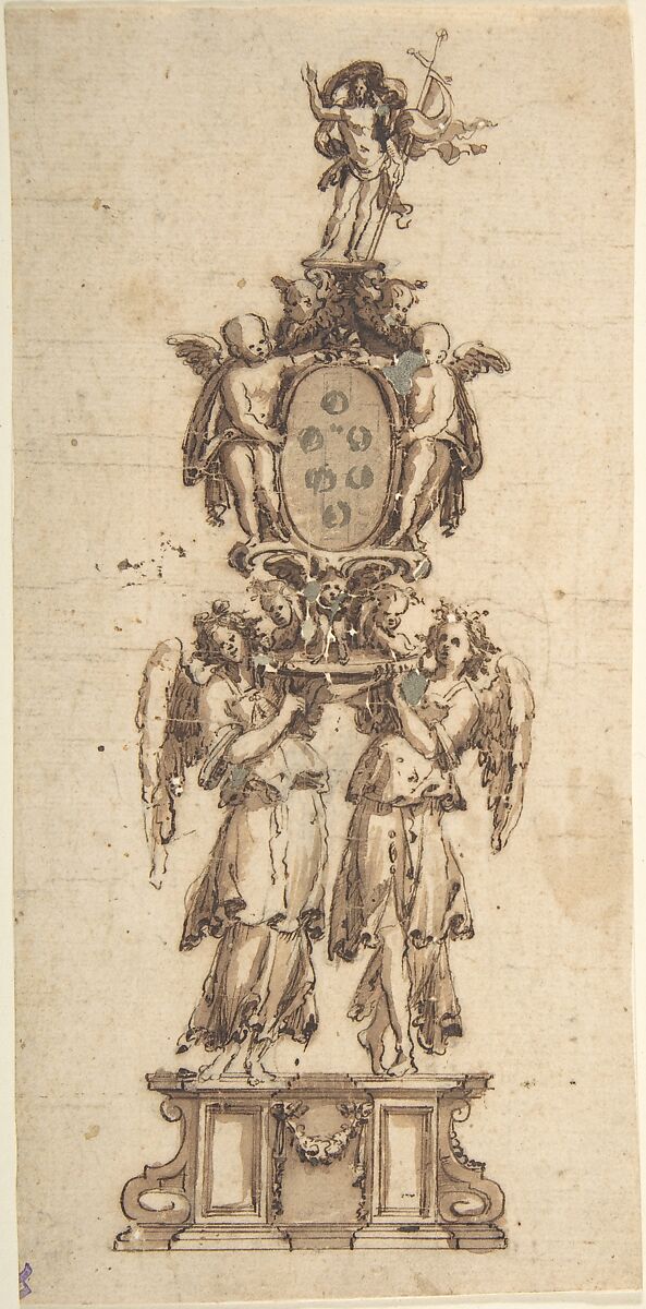 - Title: Design for a (Temporary?) Structure consisting of Two Angels carring the Medici Coat of Arms crowned by the Figure of Christ