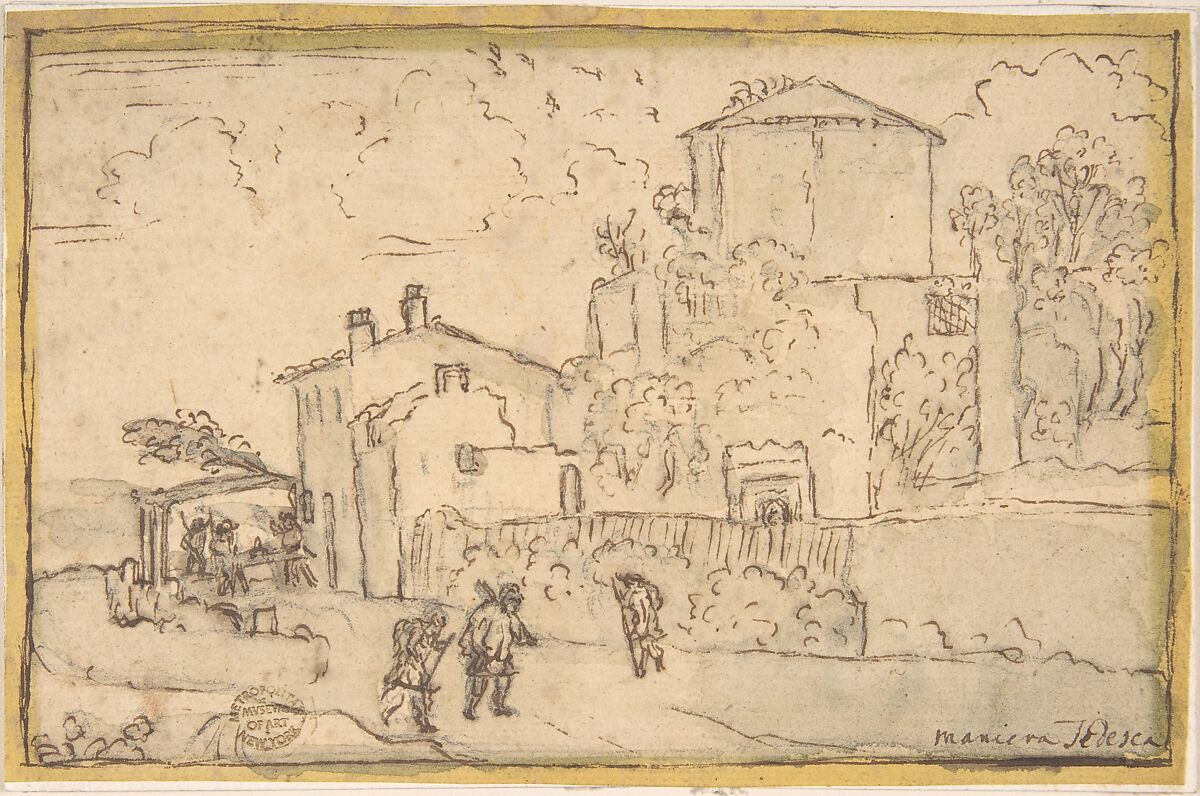 - Medium:Pen and brown ink, brush and light gray wash, over black chalk