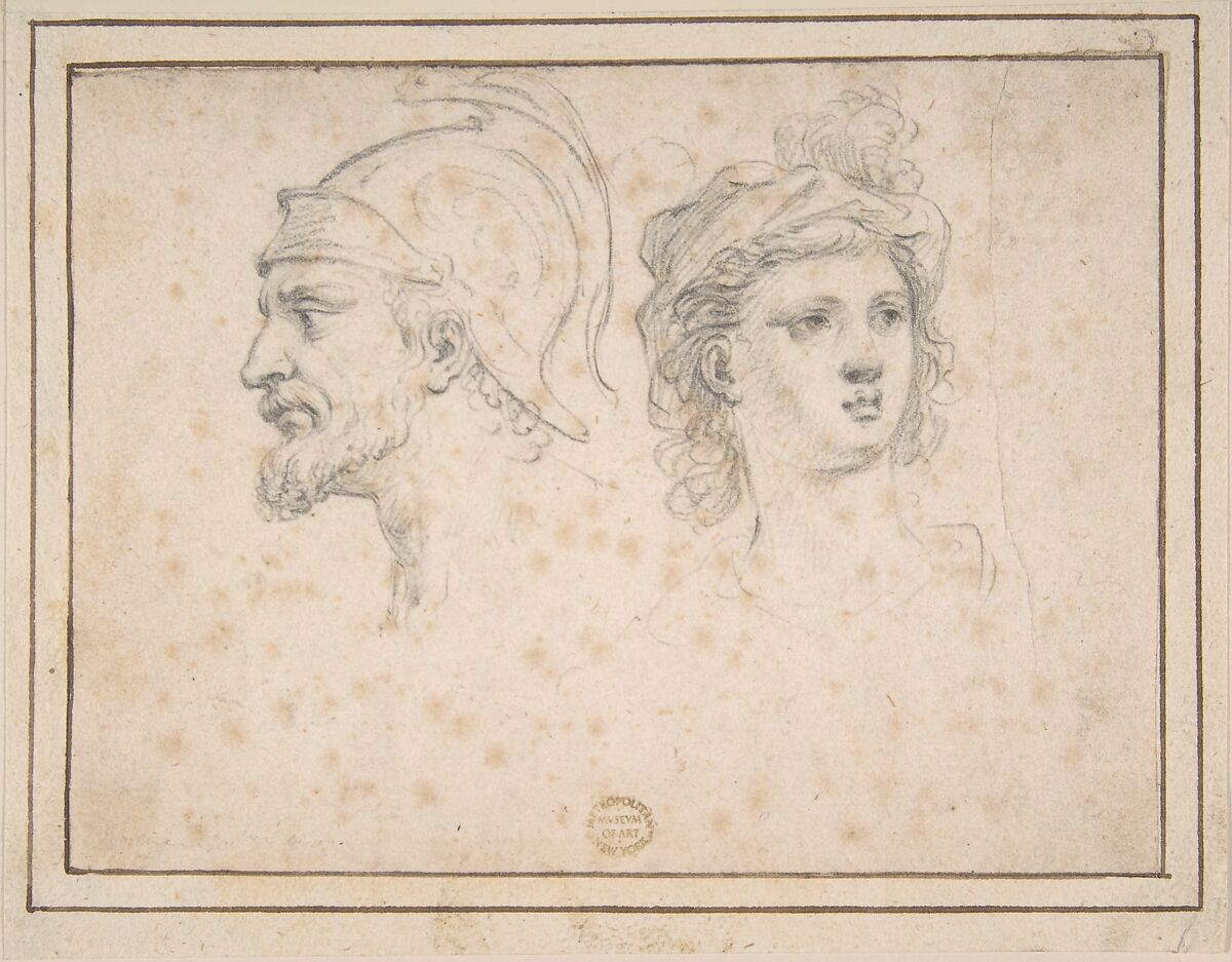- Title:Head of a Bearded Soldier in Profile, Head of a Young Woman in Three-Quarter View
