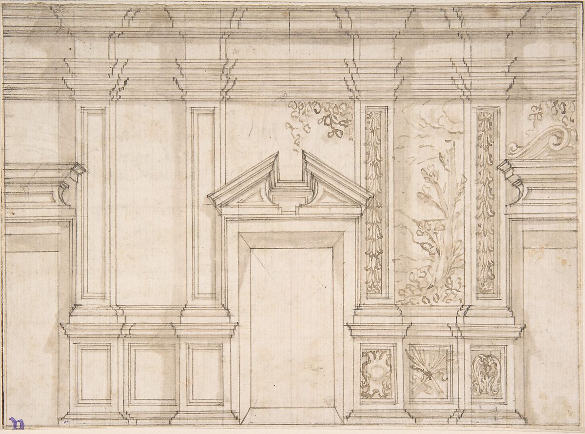 - Title:Design for a Wall Elevation with Garlands and a Landcape Scene