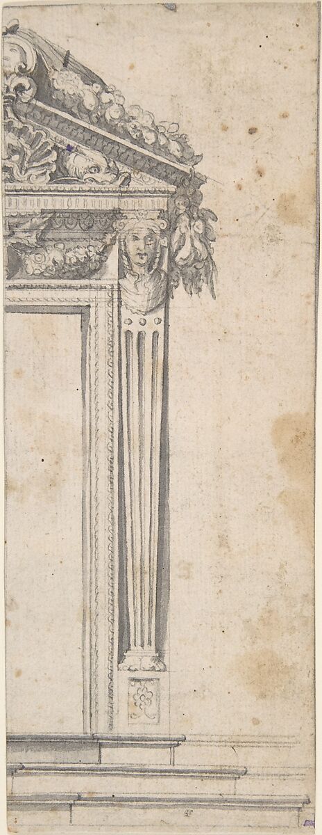 - Title: Design for the Right Side of a Door with Pediment and Fluted Pilasters
