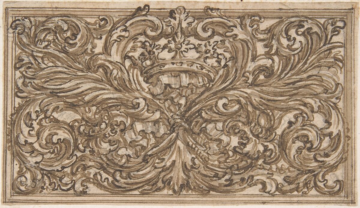 - Title:Design for a Panel Decorated with A Bundle of Foliage, A Crown and a Shell