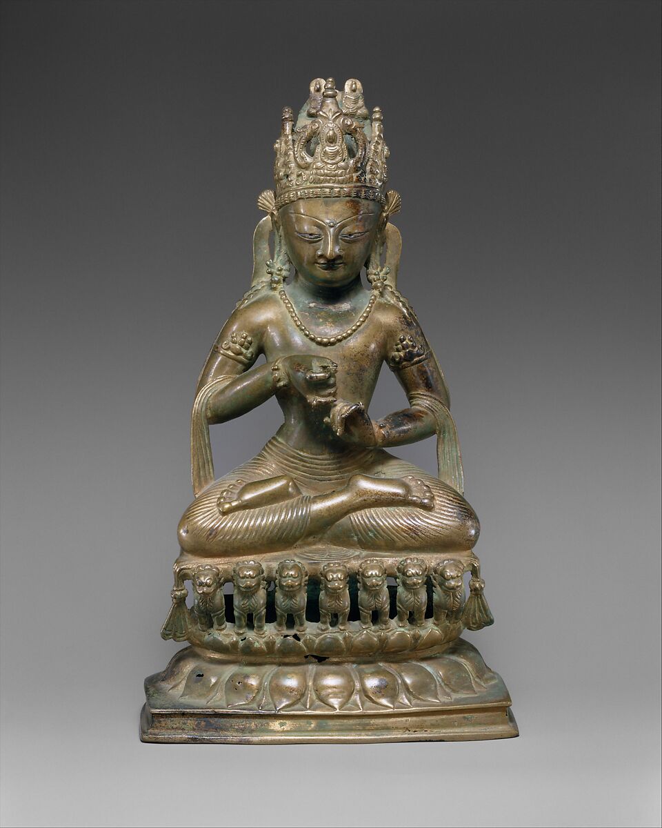 Vairochana is the presiding deity in the group of the five Transcendent Buddhas of Esoteric Buddhism. Lions are his traditional mounts.