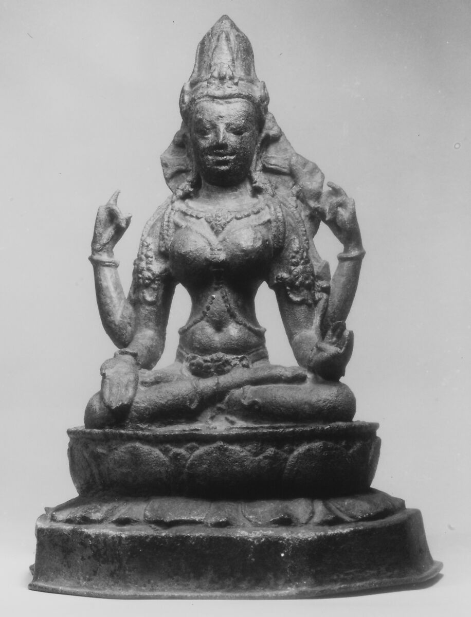 Esoteric Buddhist deities were favored in both Java and Sumatra, reflecting an intense interest in Vajrayana Buddhism during this period, fostered by regular contacts with monastic Buddhism in eastern India. The cult of Prajnaparamita was stimulated by the circulation of manuscript editions of the scripture personified by this goddess, the Ashtasahasrika Prajnaparamita. This image relates to a number of bronze icons of bodhisattvas from the Palembang region of Sumatra.