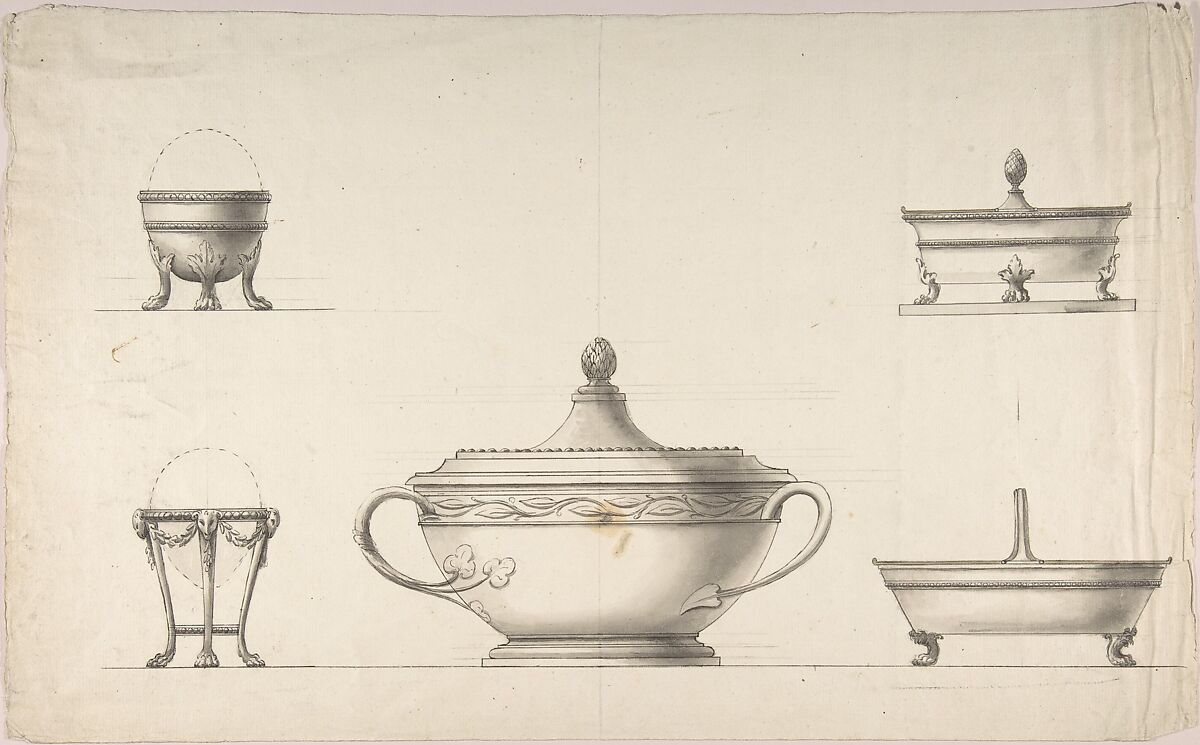 - Title: Covered Dish, Two Egg Cups, and Two Salt Cellars