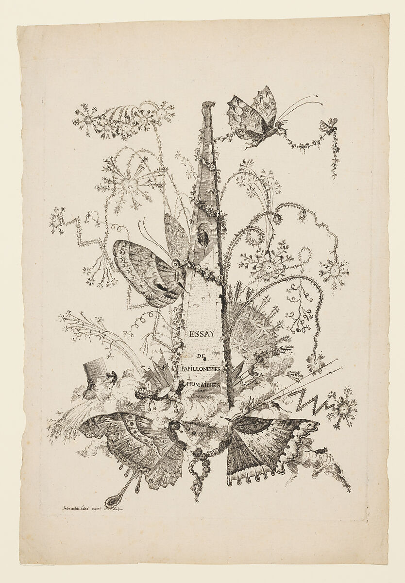- Title: Title page from Essay on Butterflies Masquerading as Humans (Essai de Papilloneries Humaines)