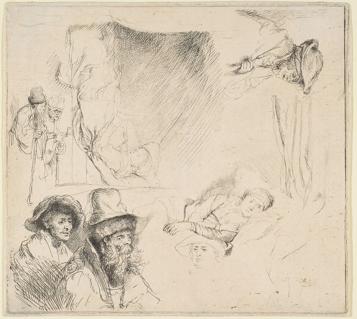 - Title: Sheet of Studies with a Woman Lying Ill in Bed, etc.