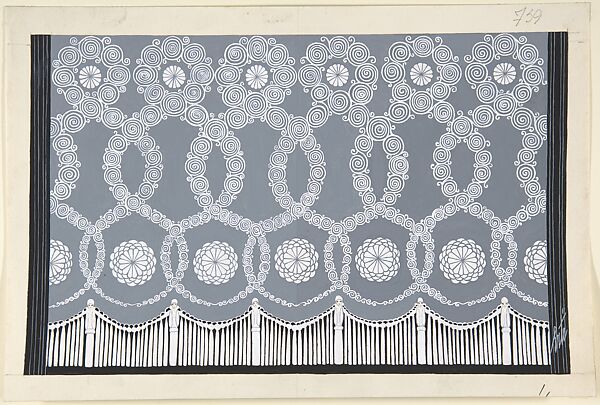 - Title: Design for Grey and White Tasseled Curtain (Premier Voile) for "Les Mariages," George White's Scandals