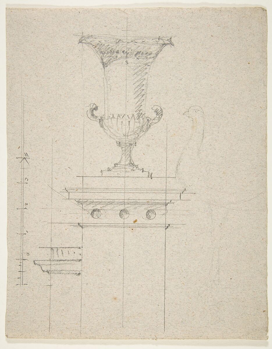 - Title: Design for an urn (verso); Designs for two urns (recto)