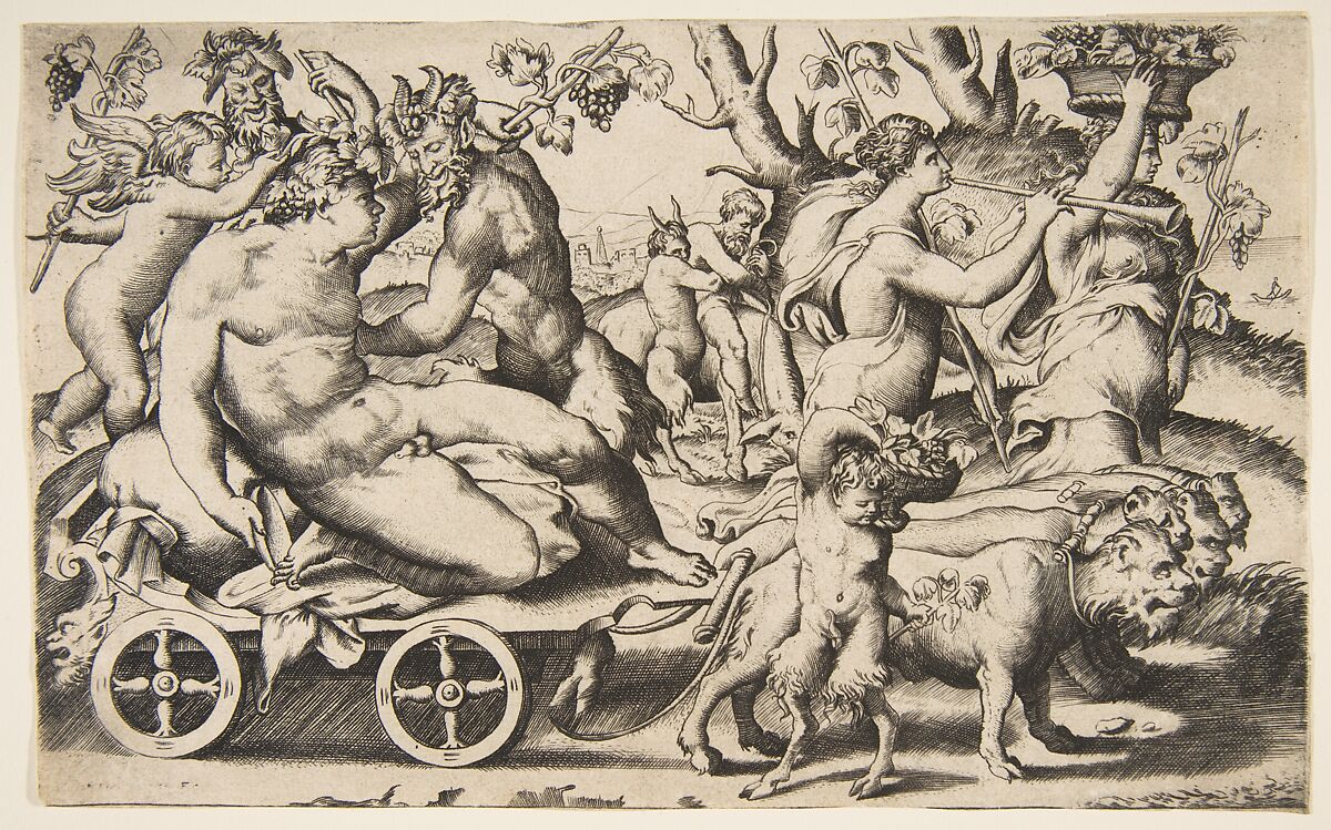 Triumph of Bacchus who is seated on a carriage at left