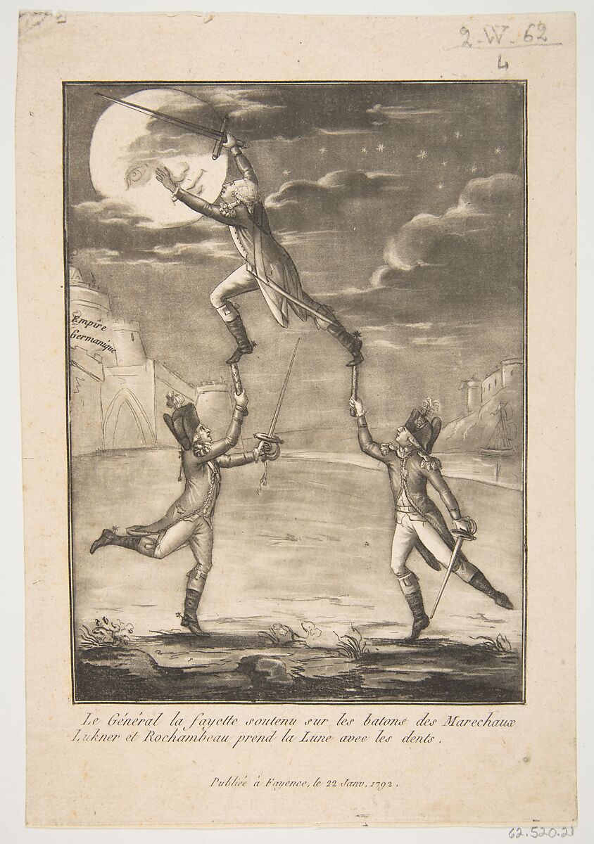 - Title: Le Général la fayette soutenu sur les batons des marechaux Lukner et Rochambeau prend la Lune avec les dents