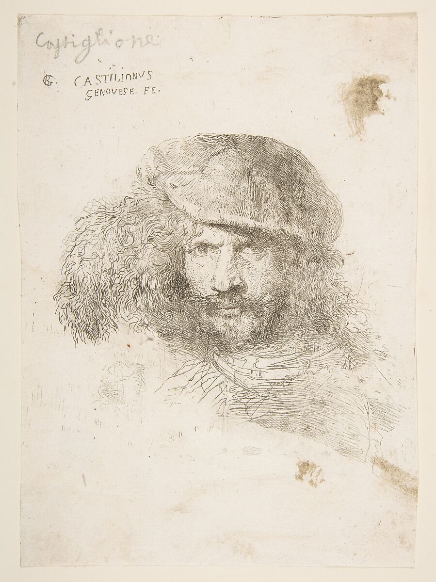 - Title: Head of a man wearing a feathered cap (possibly Bernini, possibly a self portrait), from "Large Oriental Heads"