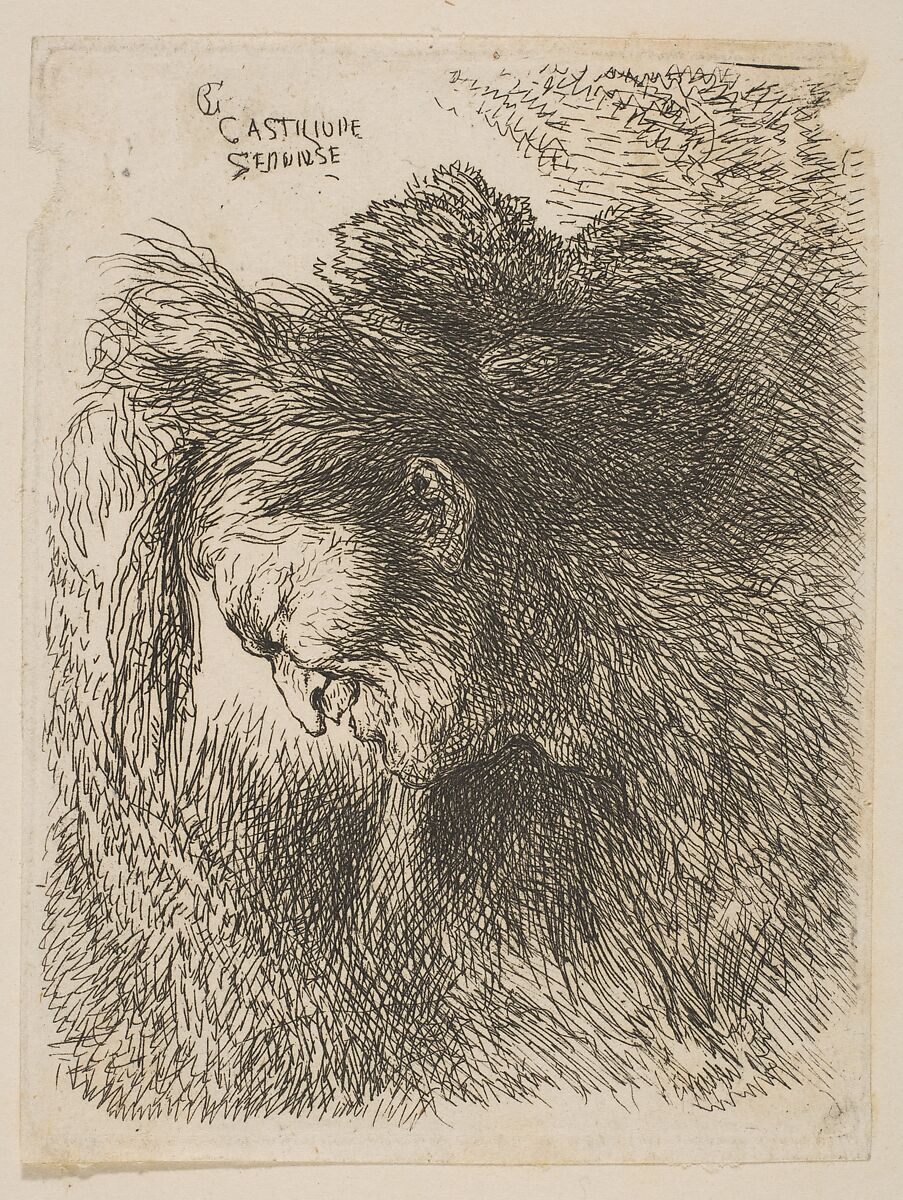 Head of an old man looking down, facing left, from "Small Studies of Heads in Oriental Headress"