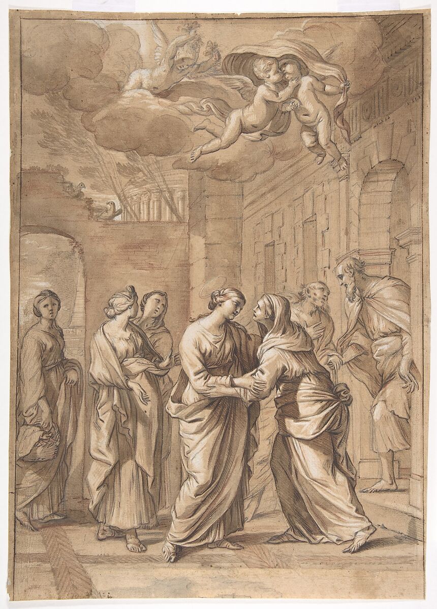 - Medium: Graphite, red chalk, pen and black ink, brush and brown and gray wash, heightened with white gouache; framing lines in pen and black ink
