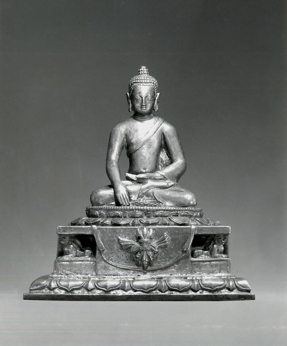 Akshobhya is one of the five Transcendent Buddhas of Esoteric Buddhism. His attribute, the thunderbolt scepter (vajra), is displayed on the cloth frontal of his lion-supported lotus throne.