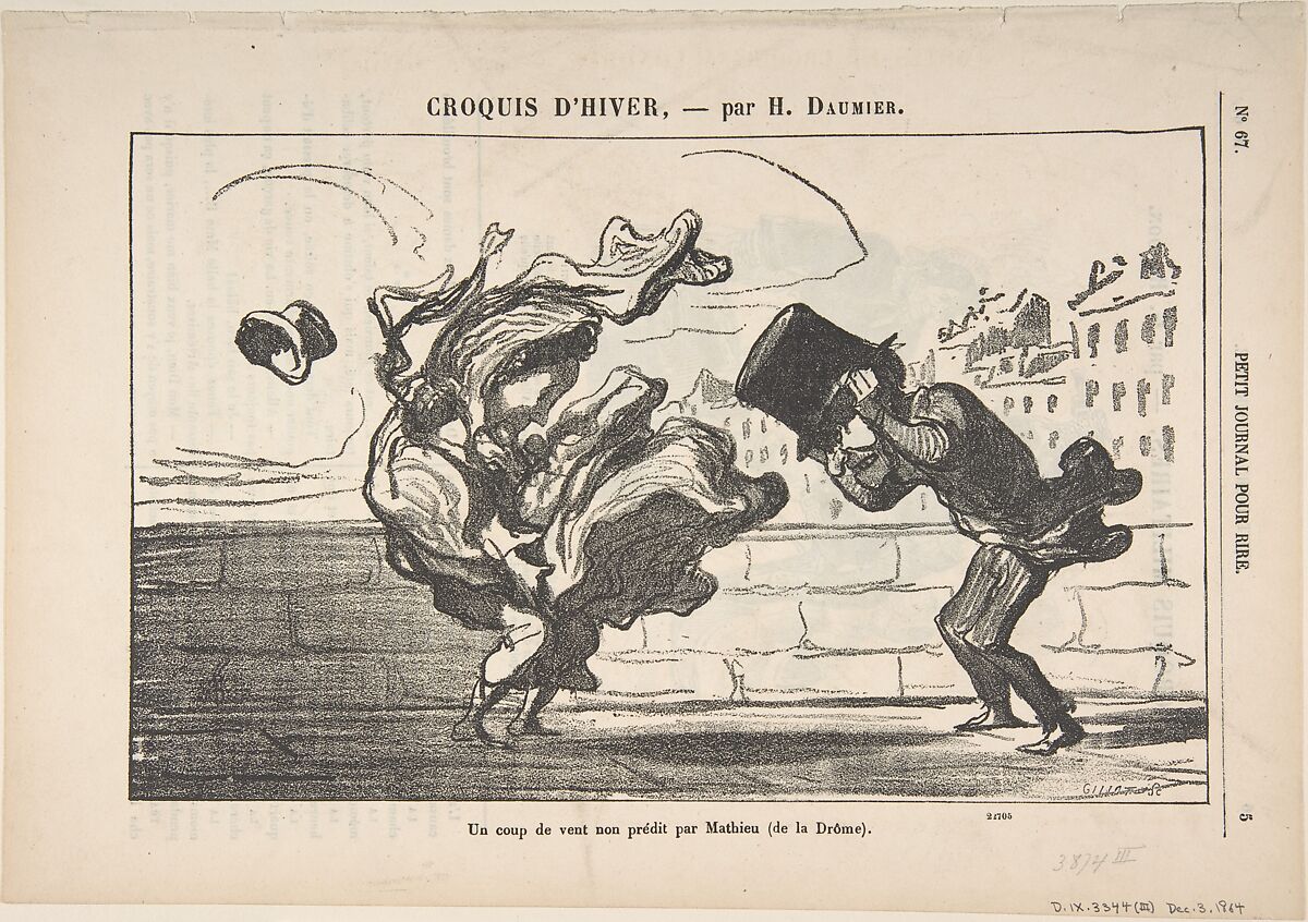 - Title: Un Coup de Vent non Prédit par Mathieu (de la Drôme), Plate 1 of "Croquis d'Hiver"