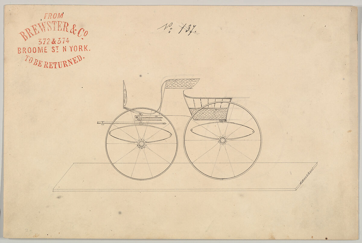 Talented draftsmen employed by the firm included Paul Steinbeck, Herman Stahmer and John Gribbon, the latter teaching at the Carriage Builders and Designers Technical School, which opened in 1880 and was housed initially at the Metropolitan Museum of Art. When the company finally dissolved in 1923, its last owner William Brewster (1866–1949) donated its archive of design and presentation drawings to the Museum where he served as benefactor and trustee.