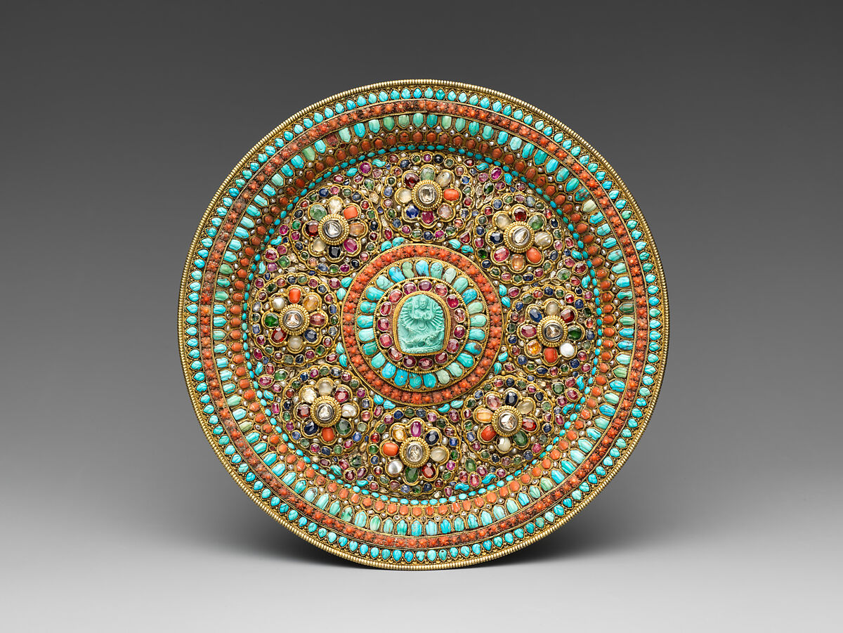 - Medium:Gilt silver, emeralds, rubies, sapphires, diamonds, pearls, coral, shell, amber, and semiprecious stones