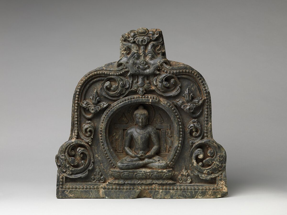 - Title:Meditating Buddha with Alms Bowl Enthroned in a Foliated Niche