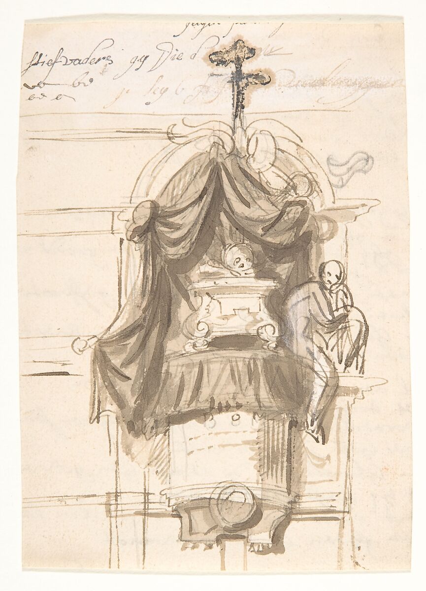 - Title: Design for a sepulchral monument in the form of a pulpit (recto); Fragment of a text (verso)