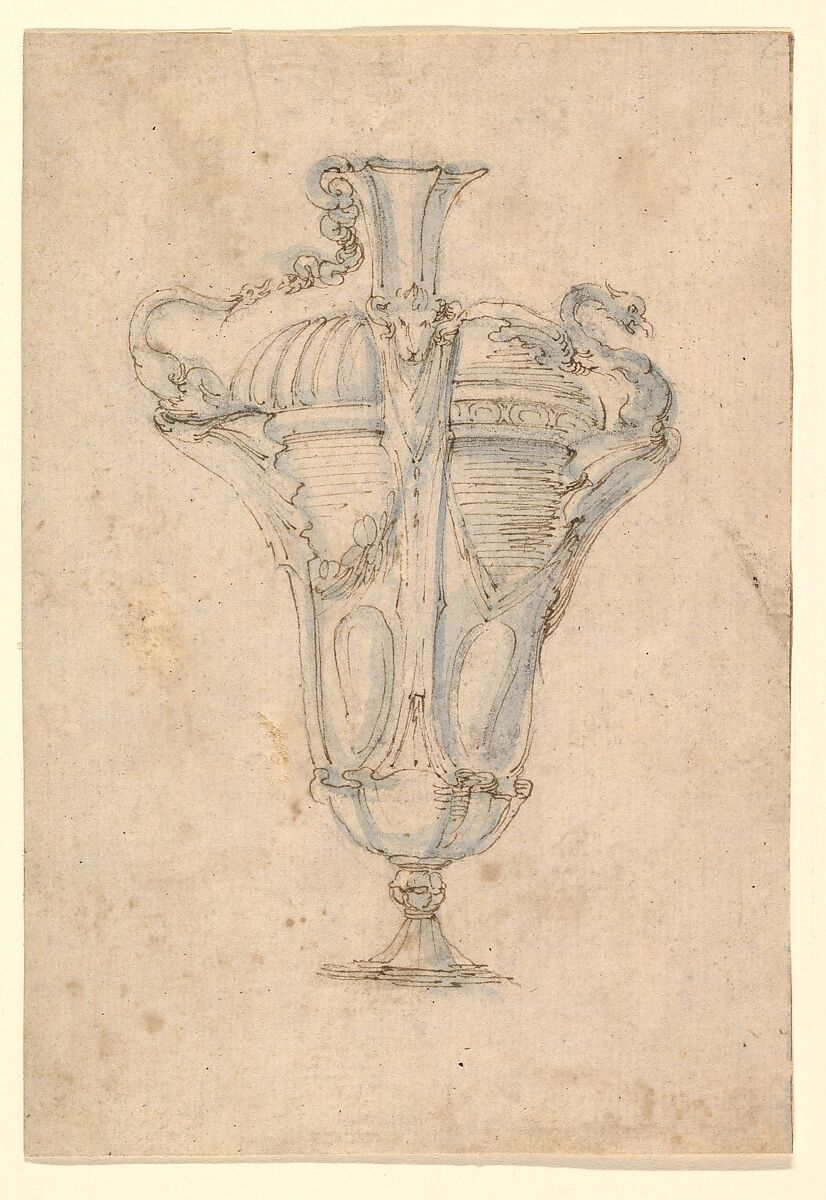 The drawing is finished with a light blue wash that was likely applied to suggest that the ewer was meant to executed in glass. It is part of a group of twenty similar drawings that have traditionally been counted as the work of the prolific Italian artist Stefano della Bella. However, the distinct execution with the blue wash has also given rise to the idea that they were executed by another artist, who is therefore referred to as 'The Master of the Blue Wash'.