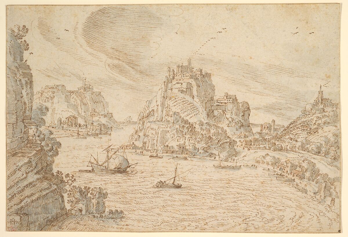 - Title: A Rocky Estuary with Ships and Hill Towns