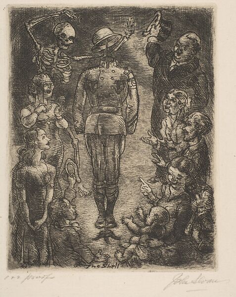 Sloan states that this plate is an expression of the idea that uniforms are one of the basic devices of militarism. World War II broke out shortly after this plate was made, see: Morse 1969, p. 338.