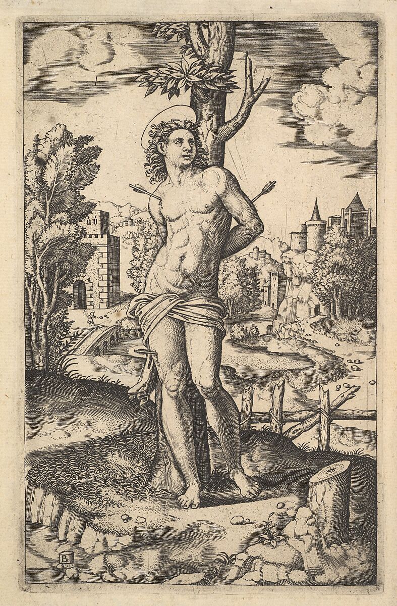 - Title: Saint Sebastian tied to a tree pierced by arrows