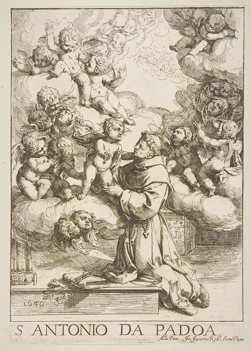 - Title: Saint Anthony of Padua adoring the Christ Child, copy after Cantarini