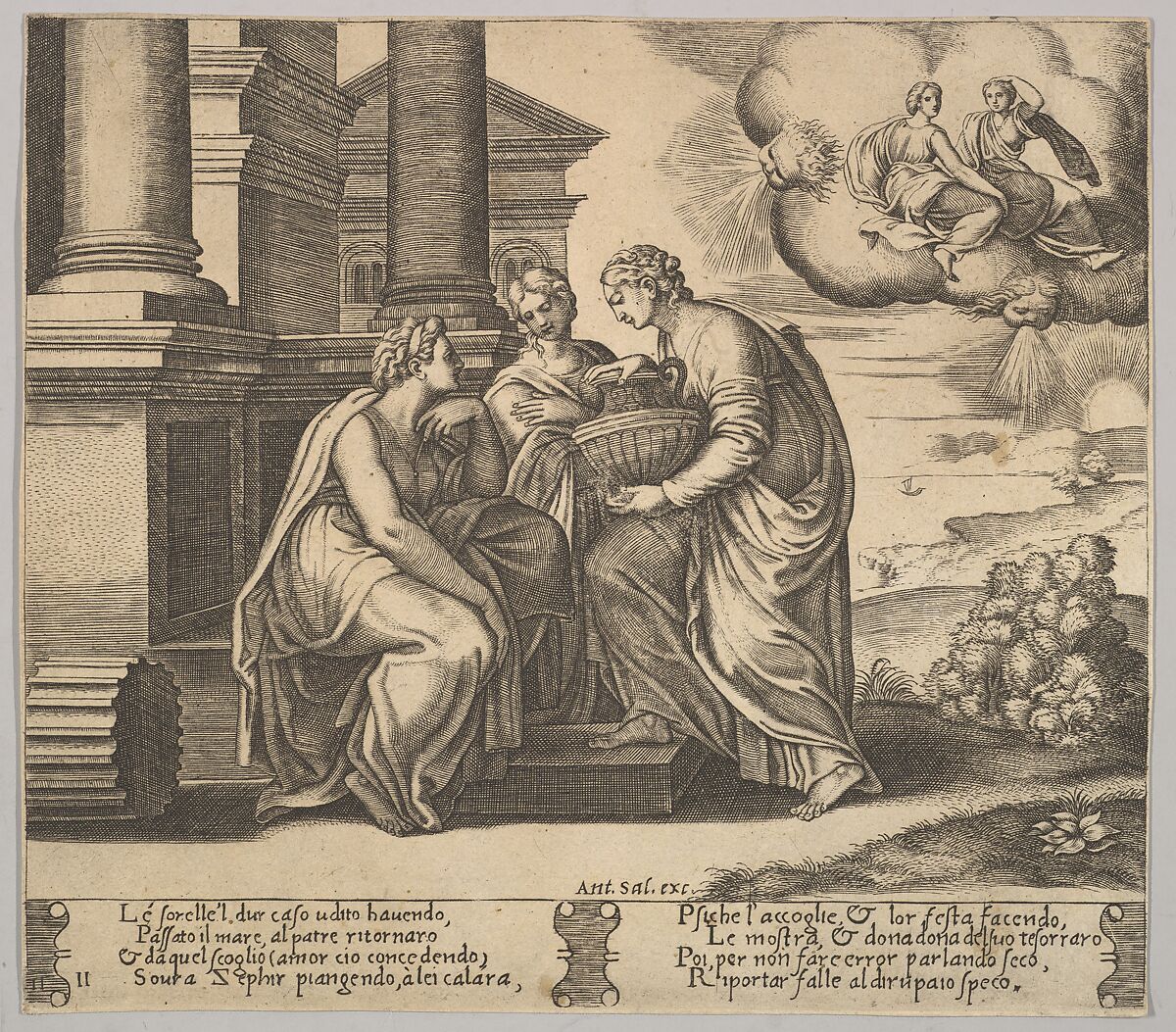 - Title:Plate 11: Psyche gives presents to her sisters, from "The Fable of Cupid and Psyche"