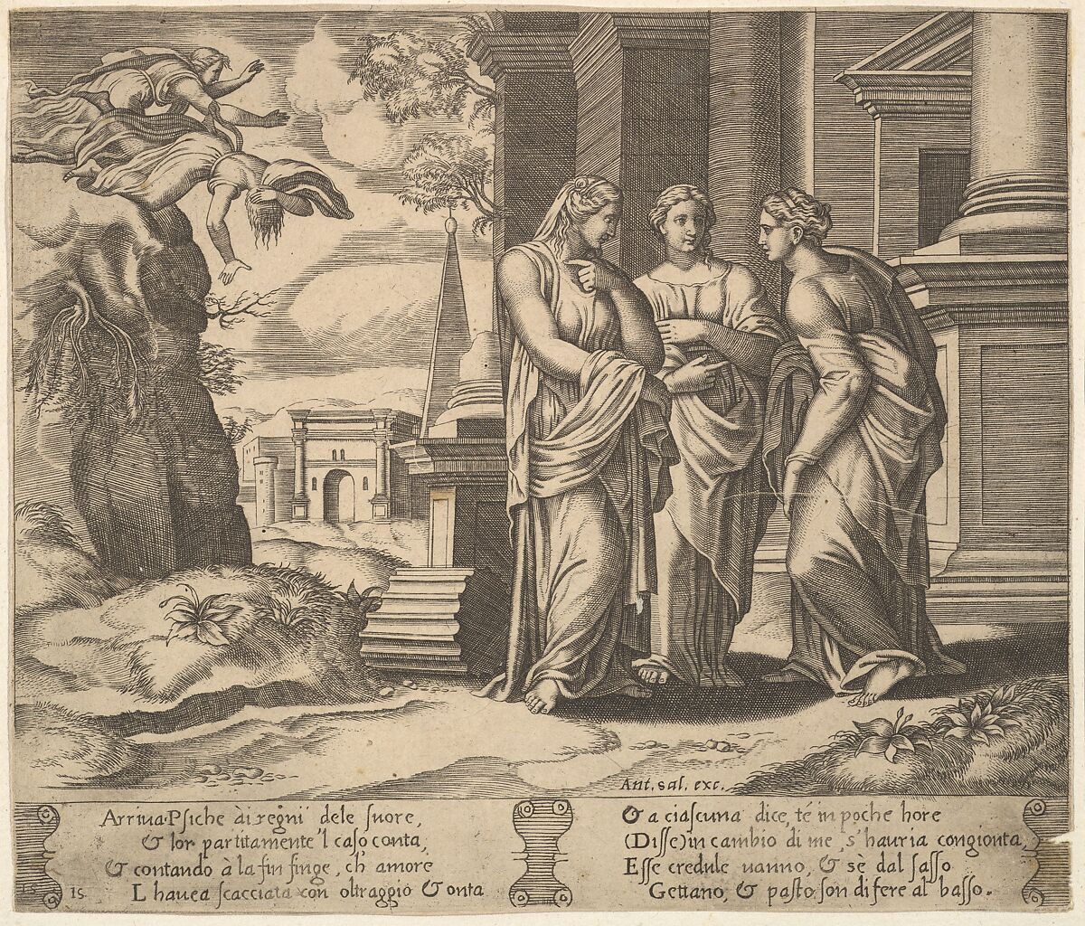 - Title:Plate 15: Psyche relating her misfortunes to her sisters, from "The Fable of Cupid and Psyche"