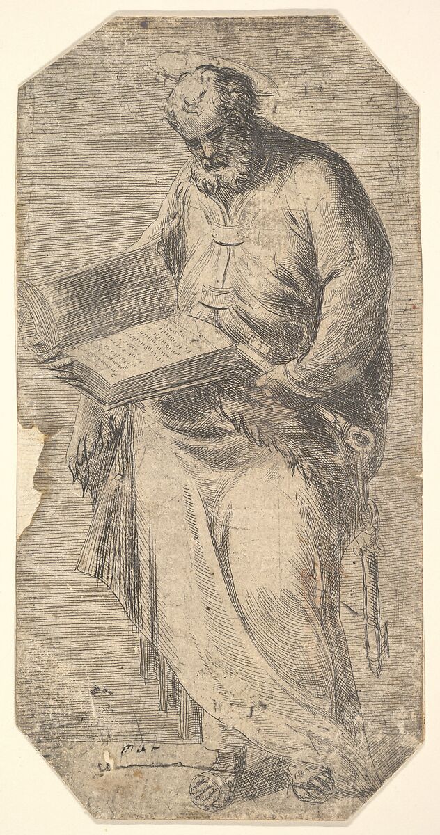 - Title: Saint Peter holding a large open book, keys by his side, from "Christ and the Apostles"