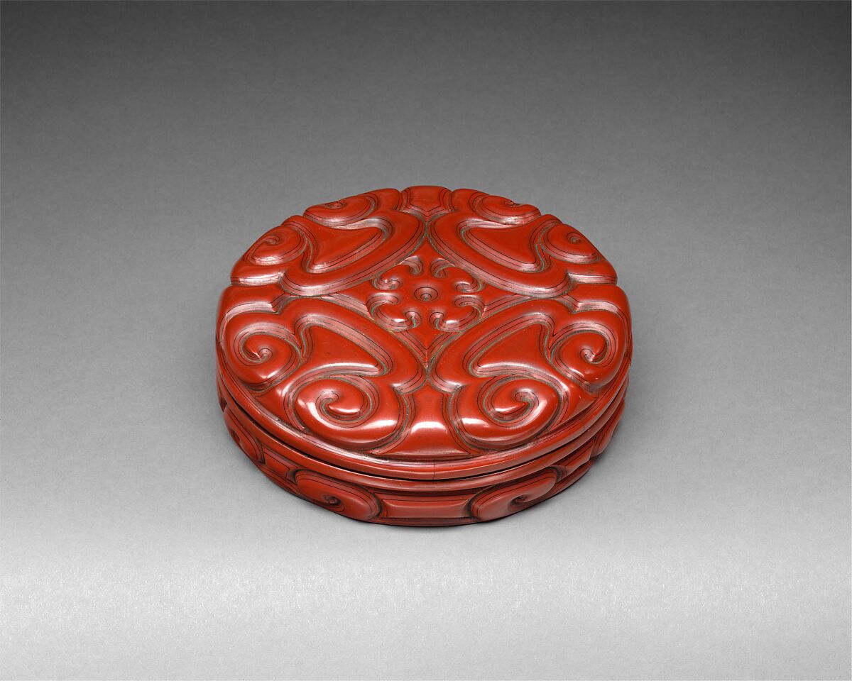 Red and black are two main colors of Chinese lacquer wares. Although the overall surface of this object appears to feature only red, its elegant pattern was carved out of layers of red and black lacquer to enhance the decorative effect.