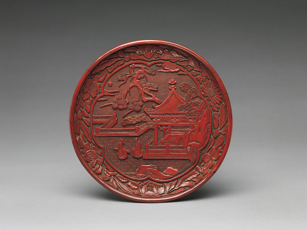 Elegant grounds and inviting pavilions are often depicted on Chinese carved-lacquer works of the late fourteenth and early fifteenth centuries. These settings were prevalent in cities in southern China, where they served as entertainment venues and private spaces for self-reflection and renewal.