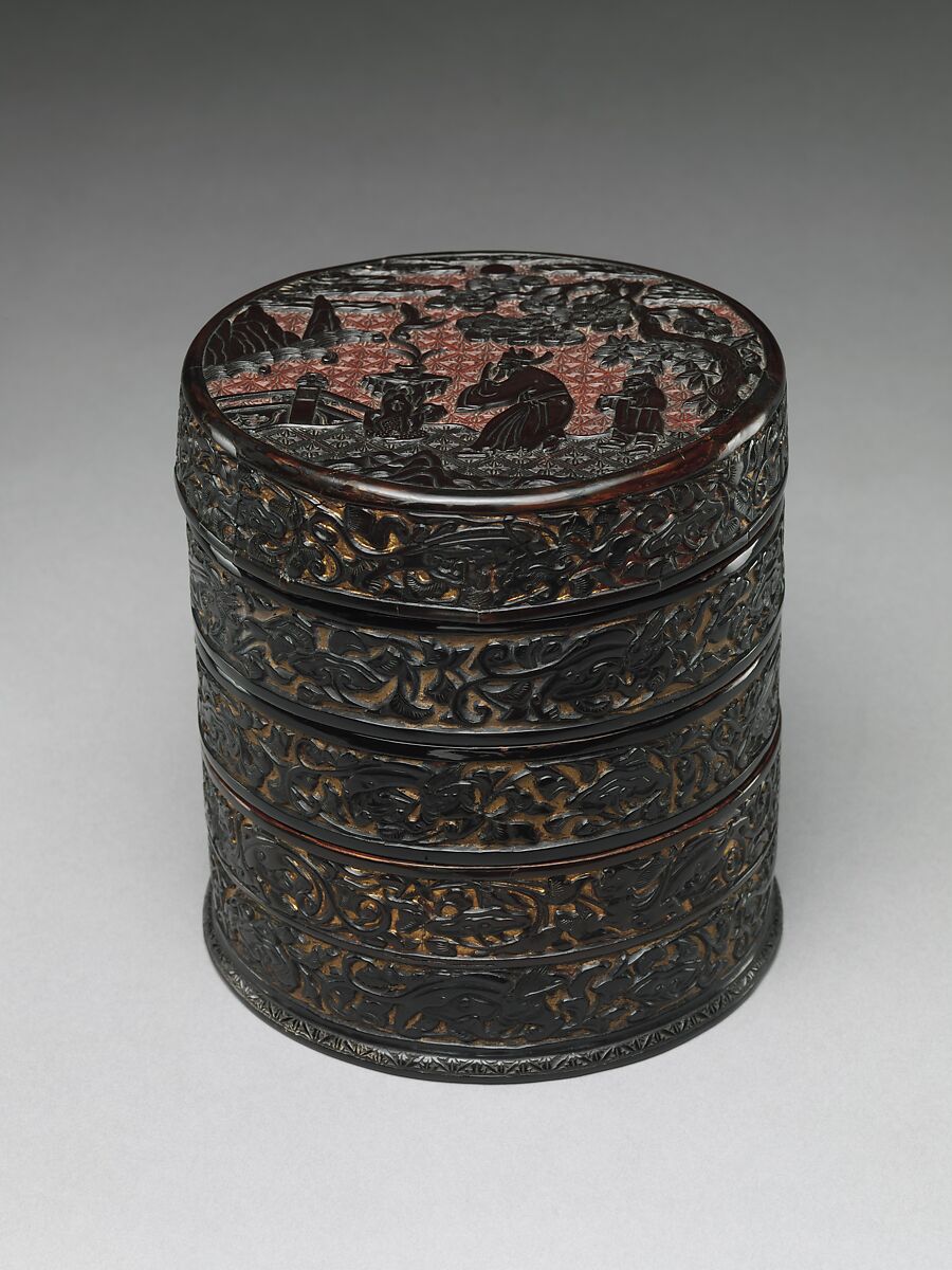 - 明初 剔黑高仕拜月圖撞盒