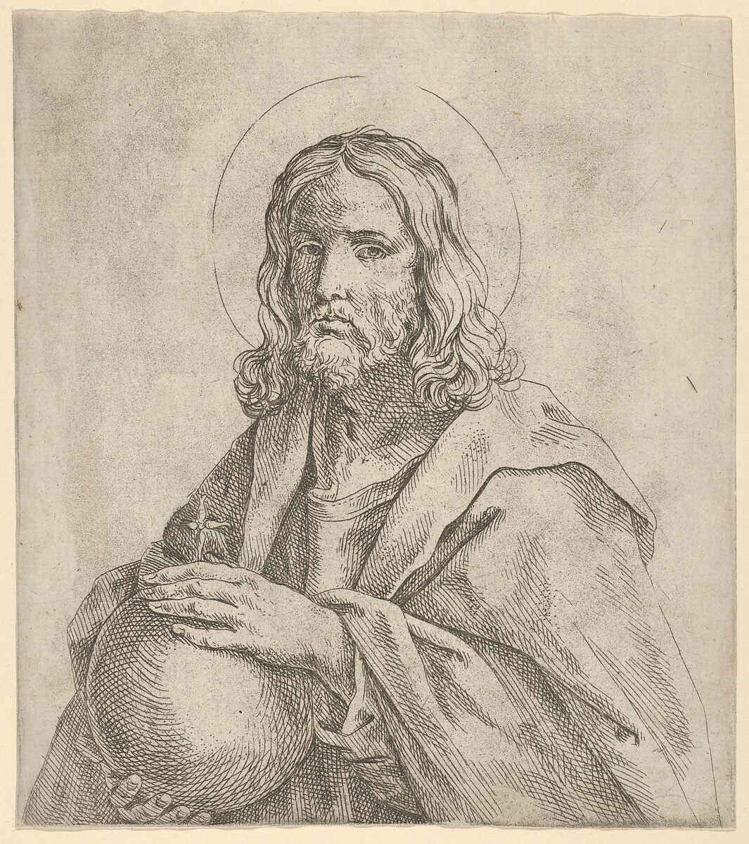 - Title: Christ seen in half-length, holding a globe surmounted by a cross