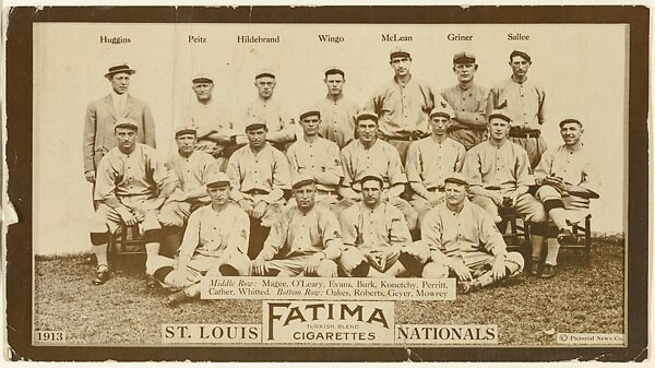 Trade cards from the "Baseball Teams" series (T200), published in a set of 16 cards in 1913 by Liggett & Myers Tobacco Company to promote their Fatima Turkish Blend Cigarettes brand.