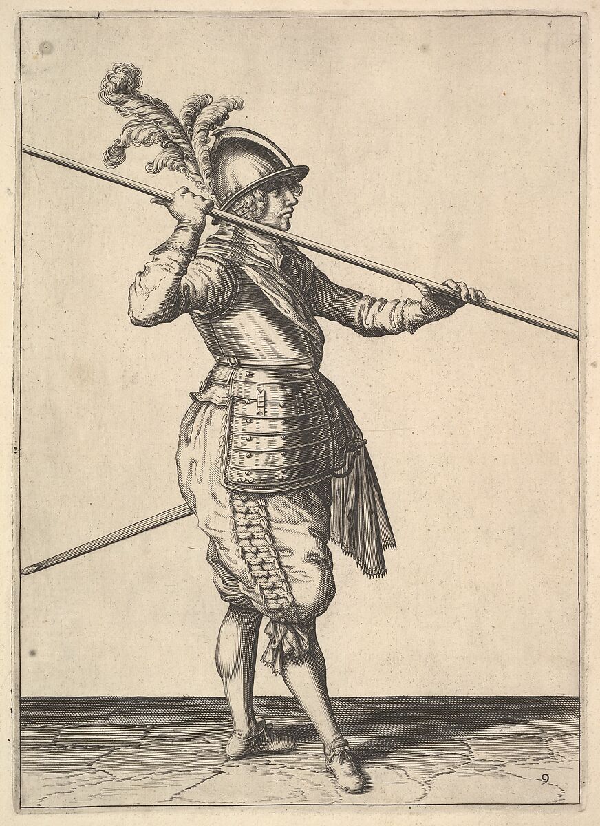 - Title: The second movement for bringing the pike on to the shoulder and holding it horizontally, from the Lansquenet series, plate 9, in "Wapenhandelinghe van Roers Musquetten Ende Spiessen" (The Exercise of Arms)