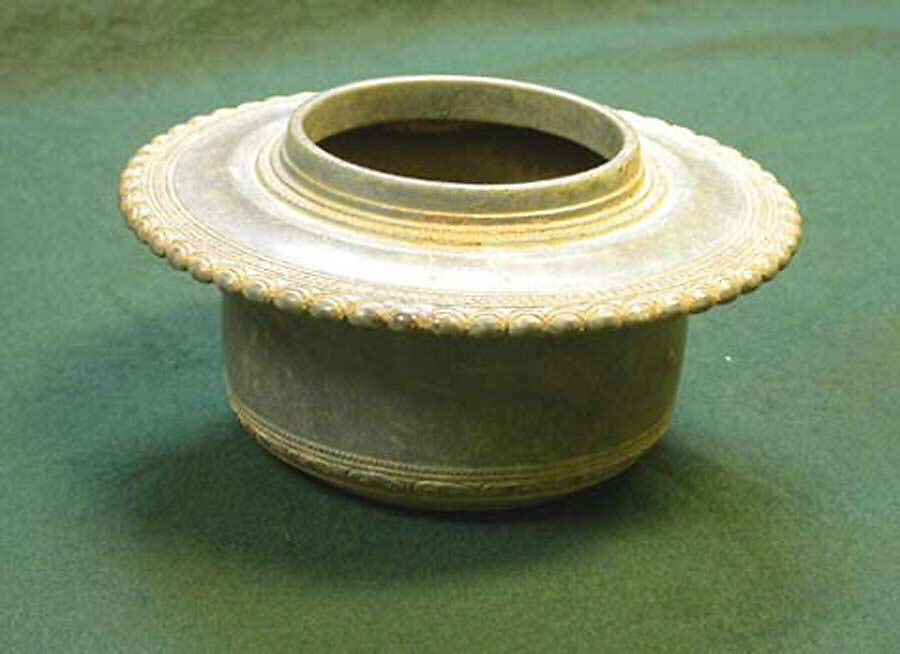 - Dimensions: H. 3 11/16 in. (9.4 cm); Diam. 4 3/4 in. (12.1 cm); Diam. of rim 7 in. (17.8 cm)