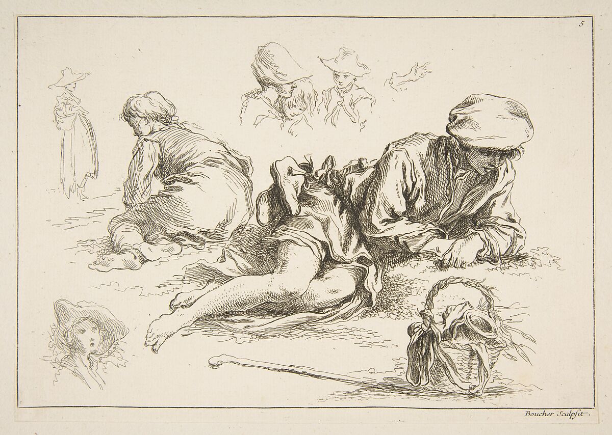 - Title:Sheet of Sketches, from "Livre d’étude d’après les desseins originaux de Blomart"