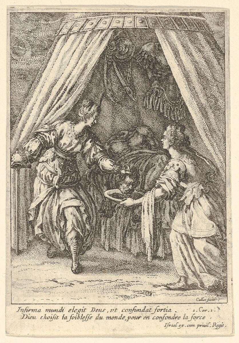 - Title: Judith placing the head of Holofernes on a tray held by an attendant, with the body of Holofernes on a canopied bed