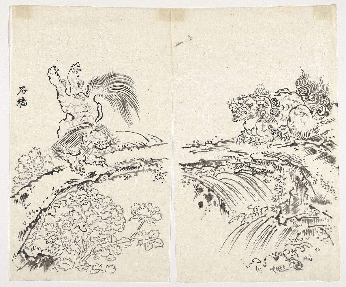 - Title: Lions Dancing Among Peonies on Stone Bridge