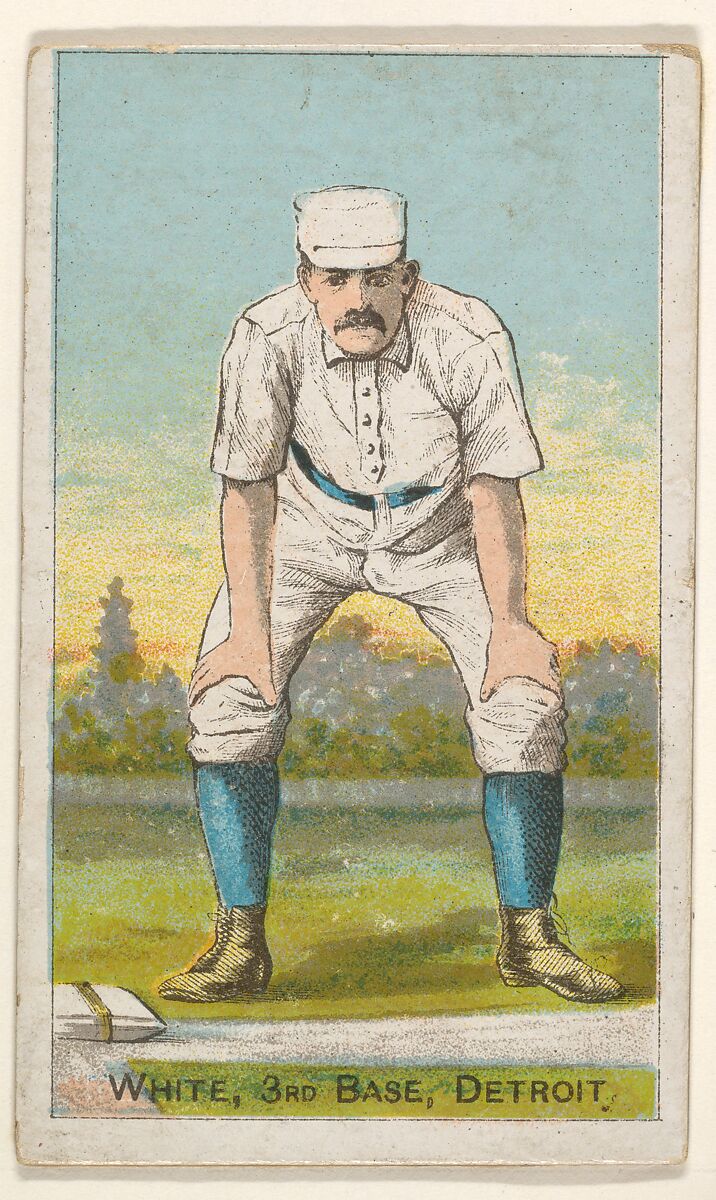 (Deacon) White, 3rd Base, Detroit, trade card from the "Gold Coin" series (N284), issued by D. Buchner in 1887 to promote Gold Coin Chewing Tobacco. In the American Card Catalog, refers to the series as "Leading Baseball Players, Police Inspectors and Captains, Jockeys, and Actors." The images in this series do not always represent the specific athletes named.